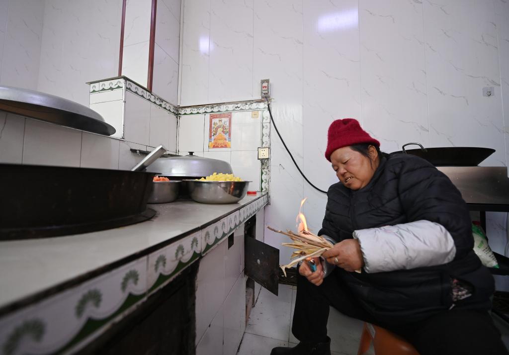 庞富强在厨房忙得团团转,没听见。来帮厨的村民赵秀荣大姐听见了,抢答:“不急咧,每天做这么多饭,‘强强娃’和他的家人太辛苦了。”
