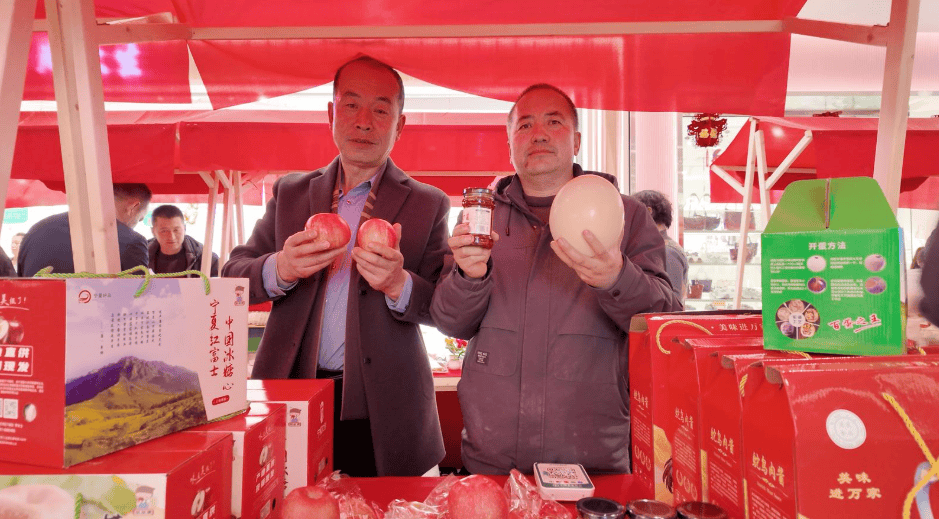 在中宁县白马乡三道湖村展位前,一只只鸵鸟蛋吸引不少顾客驻足。达鑫盛家庭农场负责人贾立胜忙着摆出产品:“鸵鸟浑身都是宝,蛋能吃,蛋壳能做成蛋雕工艺品,肉能做成肉酱。”3年前,三道湖村看准牛羊市场波动,联合周边村尝试鸵鸟养殖,如今仅达鑫盛家庭农场就养殖200余只,开发出蛋雕、鸵鸟肉酱等产品,并通过“家庭农场+农户”模式带动村民增收。